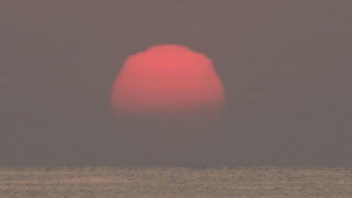 | おら家の裏庭の富山湾 富山県氷見海岸 夏の日の出 July 21, 2011 4:40 a.m. ダルマ朝日もどき |